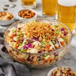 - Garnish and serve: Before serving, top the coleslaw with crunchy chow mein noodles, a sprinkle of sesame seeds, additional sliced green onions, and extra toasted almonds for added texture and visual appeal.