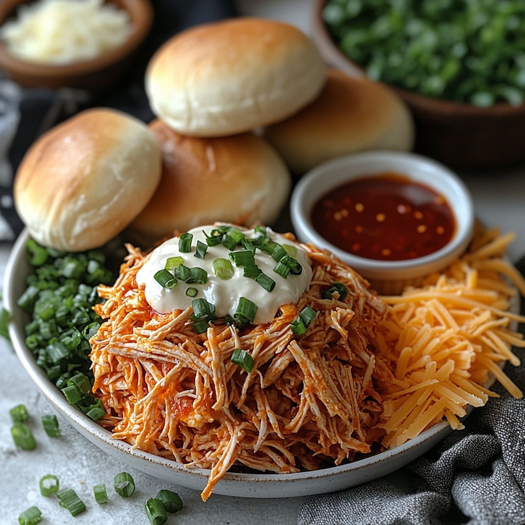 Now for the fun part — spoon a generous amount of the chicken mixture right into each bun. Don’t be shy; the filling is what makes these buns spectacularly satisfying. If you’re feeling extra cheesy, sprinkle some additional shredded cheese and chopped green onions on top for a gorgeous finish and an extra layer of flavor.