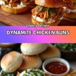 Cheesy Dynamite Chicken Buns are a delicious and spicy appetizer featuring shredded chicken mixed with a creamy, flavorful sauce and melted cheeses, all baked inside soft sandwich buns. They are perfect for parties or a tasty snack that combines heat, creaminess, and gooey cheese in every bite.