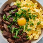 This Chinese Beef and Eggs recipe offers a delightful combination of tender marinated beef slices scrambled with soft, fluffy eggs in a savory, slightly sweet sauce. Quick and easy to make, it’s perfect for a flavorful weeknight dinner served over steamed rice or noodles.