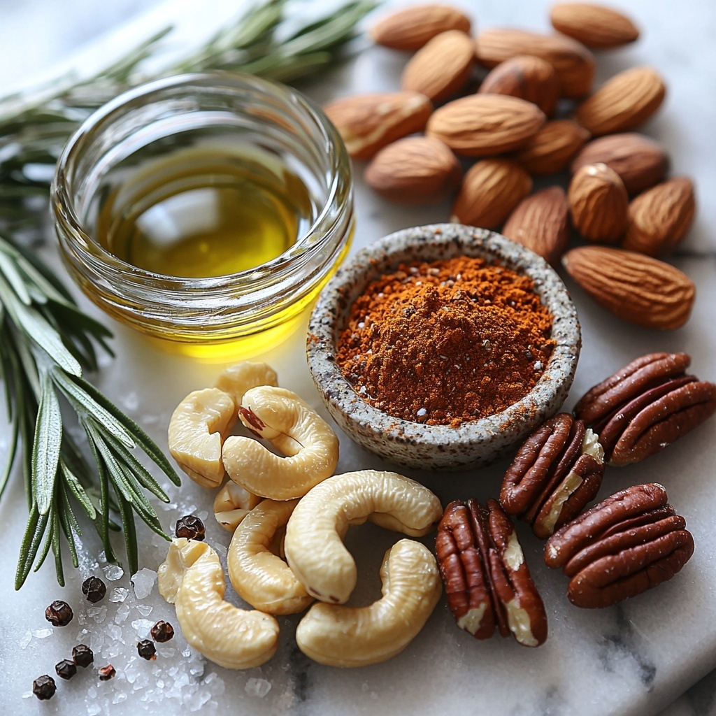 Gathering the ingredients for this Chipotle and Rosemary Spiced Nuts Recipe is easy and rewarding since each component plays a vital role in flavor, texture, or aroma. The nuts provide a rich, crunchy base while the herbs and spices create a unique, savory coating that elevates every bite.