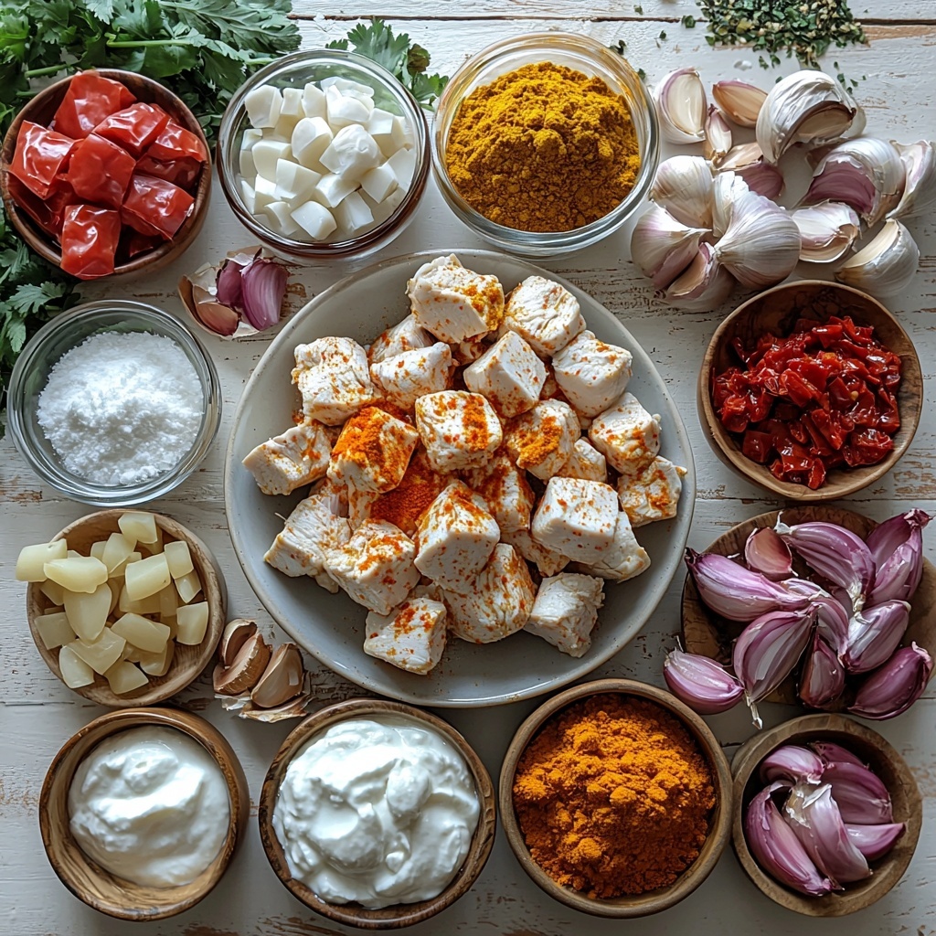 Getting your ingredients ready for this recipe is both simple and rewarding. Each element plays a unique role, from the spices that build the signature flavor to the creamy yogurt and ground nuts that add depth and texture to the dish.