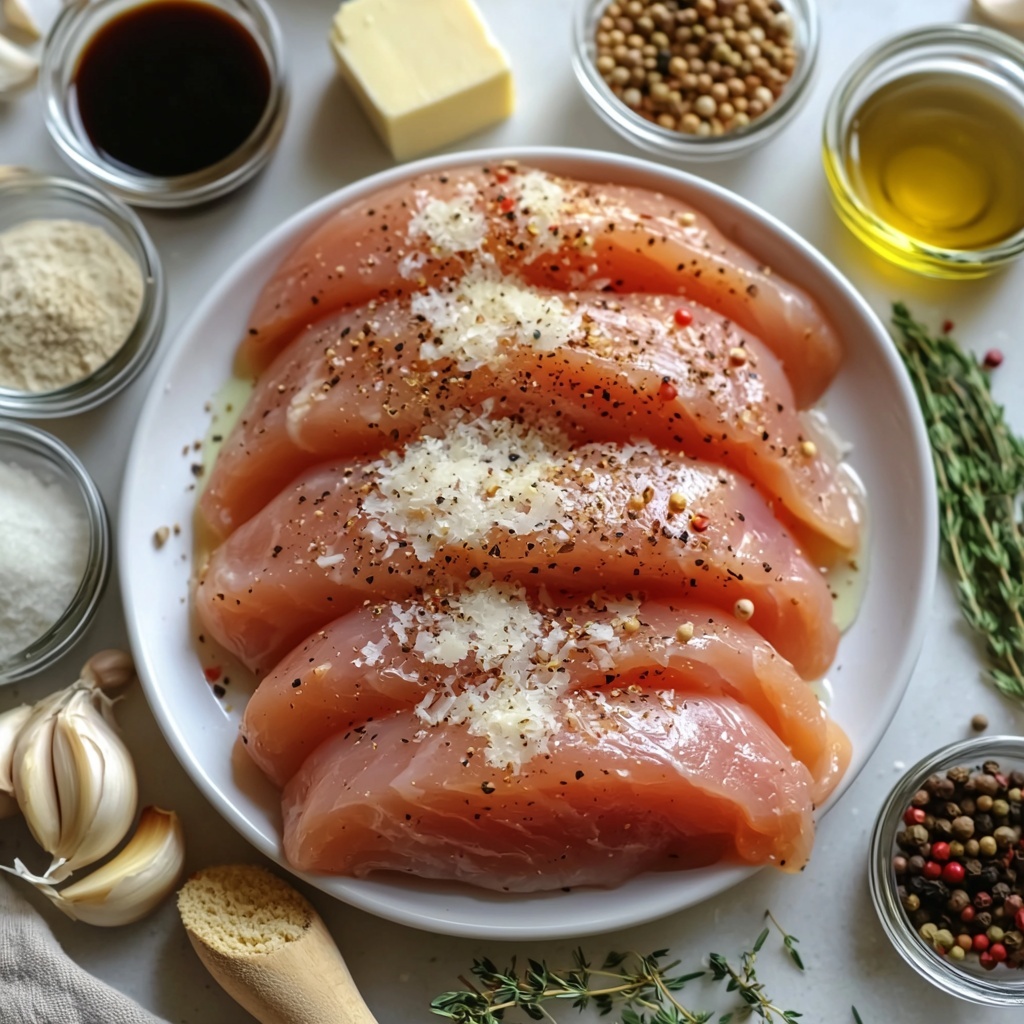 1. Season and Dredge Chicken: Season the chicken breasts evenly with salt, pepper, and Italian seasonings. Lightly coat each chicken breast in flour, ensuring they are fully dredged for a nice crust once seared.