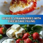 Delight in these Deviled Strawberries featuring a luscious cheesecake filling. Hollowed fresh strawberries are filled with a creamy blend of whipped cream, cream cheese, sour cream, sugar, and vanilla, then topped with a crunchy graham cracker crumb. This no-bake dessert is easy to prepare, refreshing, and perfect for summer gatherings or sweet snacks.