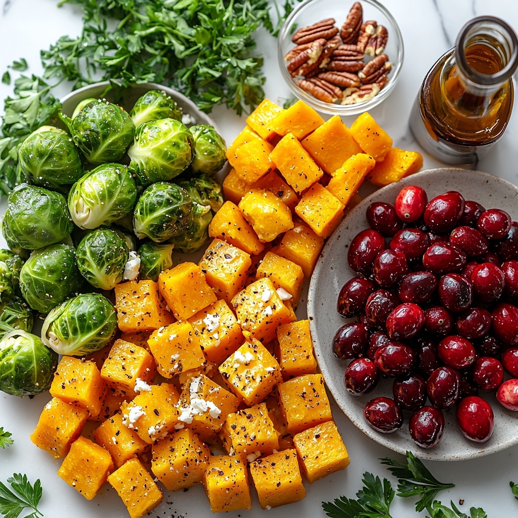 - Roast Vegetables: Toss the diced butternut squash and halved Brussels sprouts with olive oil, salt, and pepper. Spread evenly on a baking sheet and roast in the oven for 20-25 minutes, or until tender and slightly caramelized.