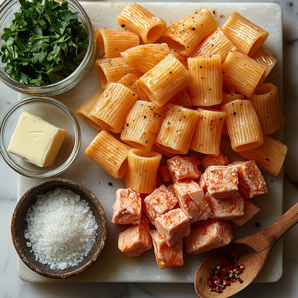 Gathering the ingredients for this Garlic Butter Chicken with Rigatoni and Parmesan Recipe is truly a breeze. Each component is straightforward yet essential, contributing vibrant flavors, creamy texture, and a hearty feel that make this dish unforgettable.