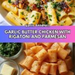 This Garlic Butter Chicken with Rigatoni and Parmesan is a creamy, comforting pasta dish perfect for a weeknight dinner. Tender chicken pieces are sautéed and simmered in a rich garlic butter sauce with heavy cream and Parmesan, then tossed with al dente rigatoni for a flavorful meal garnished with fresh parsley.