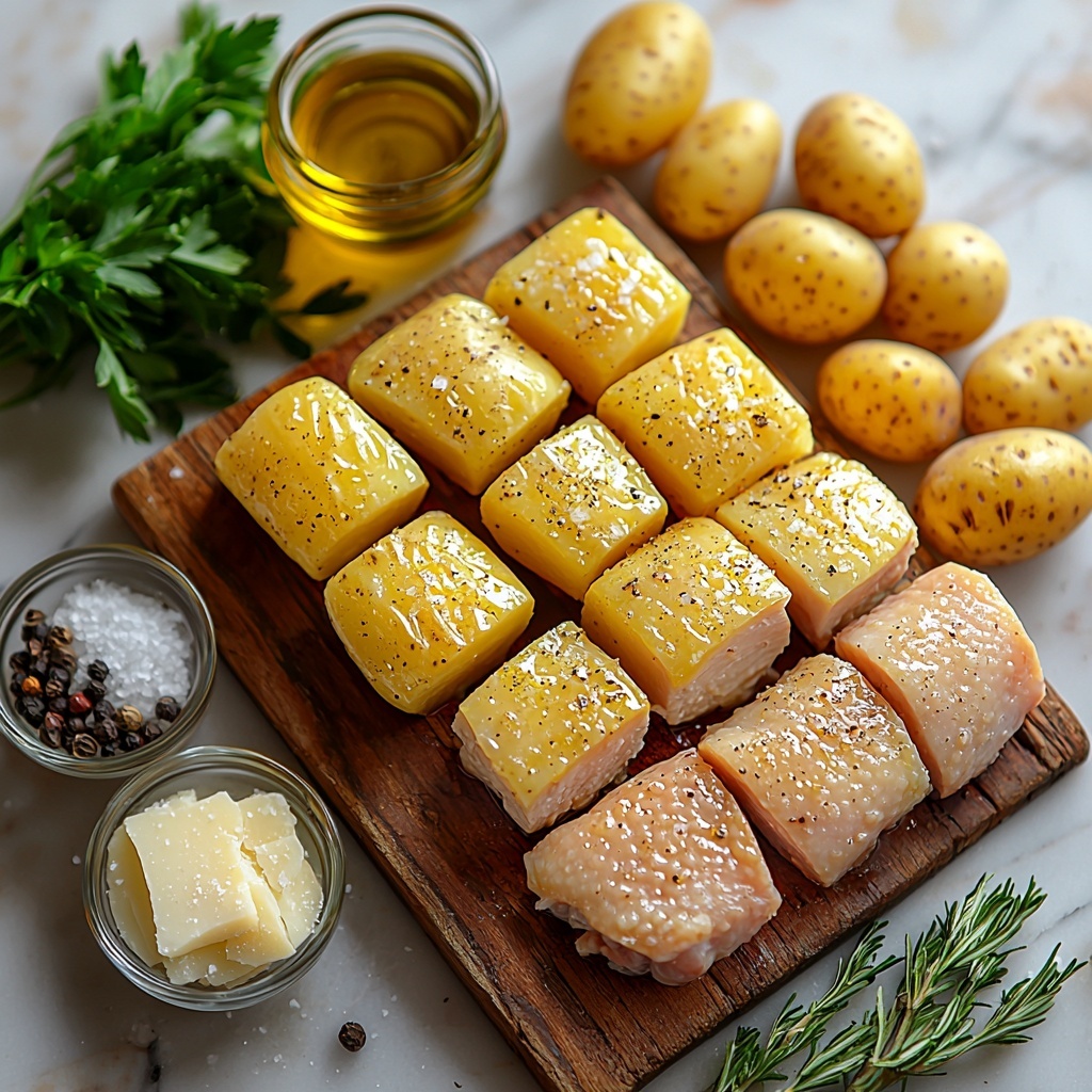 This Garlic Parmesan Chicken and Potatoes recipe combines tender boneless chicken thighs with crispy baby potatoes, all roasted together in a flavorful mixture of garlic, Parmesan cheese, and olive oil. Perfectly seasoned and baked until golden and juicy, this one-pan dish is easy to prepare and delivers delicious results for a comforting meal.