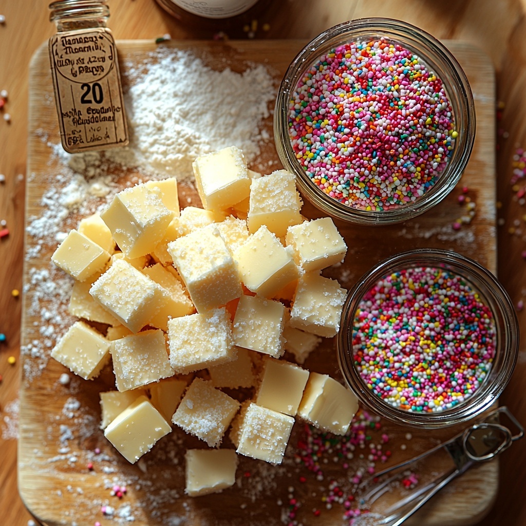 Gathering these simple but essential ingredients is the first step in creating your perfect Holiday Shortbread Bites Recipe. Each one plays a crucial role: from the creamy texture butter brings, to the delicate almond flavor and the crunch of sugar, right down to the festive sprinkle touch that brightens every bite.