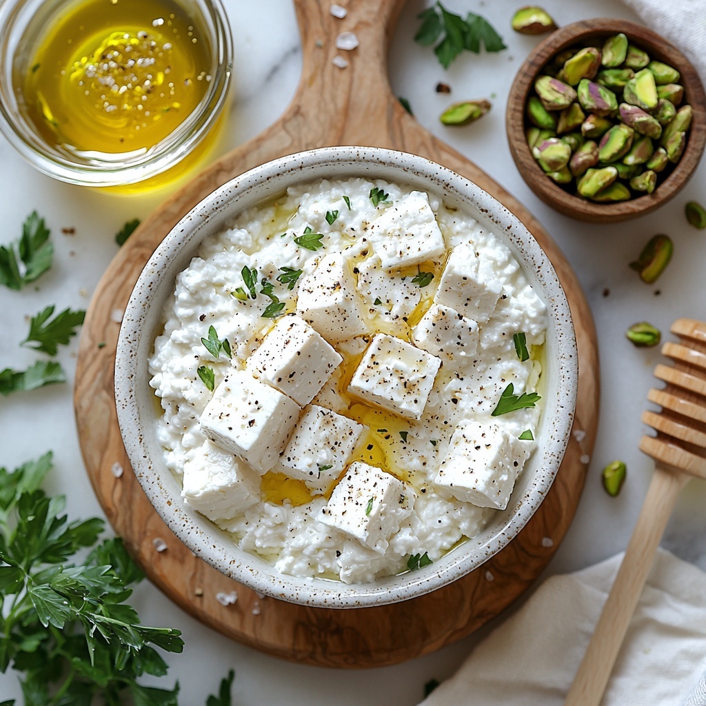 Gathering a handful of straightforward ingredients makes this recipe a breeze to whip up, and each one plays a crucial role. The creamy cottage cheese provides a light base, feta adds tang and saltiness, olive oil brings richness, honey adds a floral sweetness, while pistachios offer the perfect crunch and a vibrant pop of color.