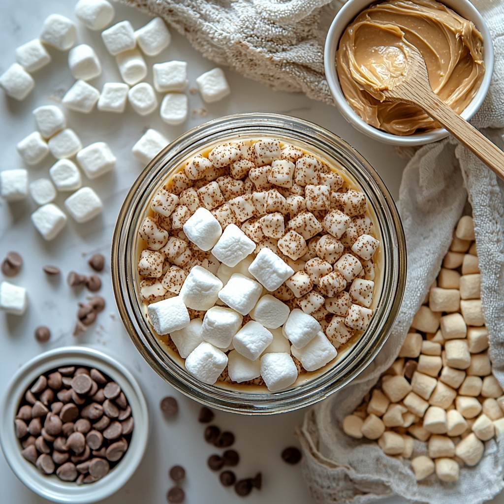 These ingredients are delightfully straightforward, each playing a vital role in delivering the signature crunch, creaminess, and sweetness of the cookies. From the silky smoothness of the peanut butter and white chocolate to the light, crispy Rice Krispies and mini marshmallows providing a pillowy touch—every component counts for a perfect avalanche of flavors and textures.