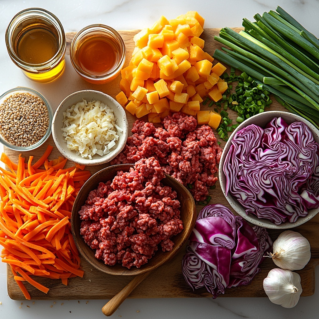 The magic of this soup lies in its simplicity and thoughtful ingredients, each contributing a unique layer of taste, texture, or aroma. From the hearty ground beef to the bright zing of fresh ginger and the crunch of cabbage and carrots, every component works together to recreate classic egg roll flavors in soup form.