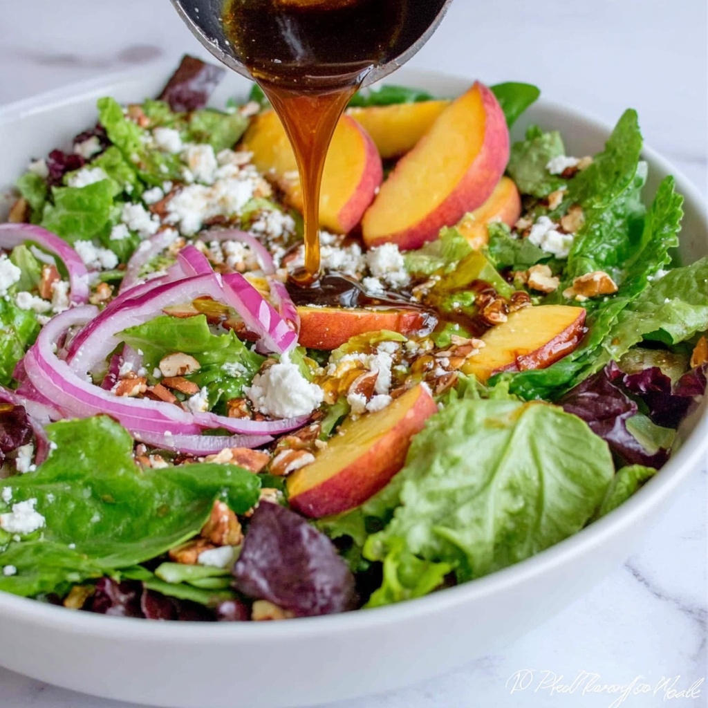 Gathering the ingredients for this salad is as simple as it is satisfying. Each component adds a unique touch—fresh greens provide a crisp base, peaches bring sweetness, avocado adds creaminess, walnuts contribute crunch, and goat cheese lends a tangy richness. These essentials blend beautifully to create a dish that’s as colorful as it is delicious.