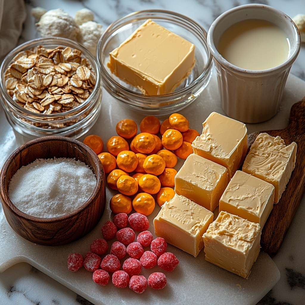 Every ingredient in this recipe plays a crucial role, from the silky butter and smooth peanut butter that lend richness and body, to the oats that provide that perfect chewy texture. Even the Reese’s Pieces candy contributes a delightful pop of color and hint of chocolate-peanut butter magic. Let’s dive into these essential, easy-to-find ingredients that make this Peanut Butter No Bake Cookies Recipe such a standout.