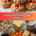 These Peanut Butter No Bake Cookies are a quick and easy treat combining the rich flavors of creamy peanut butter, sweet sugar, and crunchy oatmeal with a fun twist of Reese’s Pieces candy. Ready in just 15 minutes, these cookies require no oven time, making them perfect for a last-minute dessert or snack.