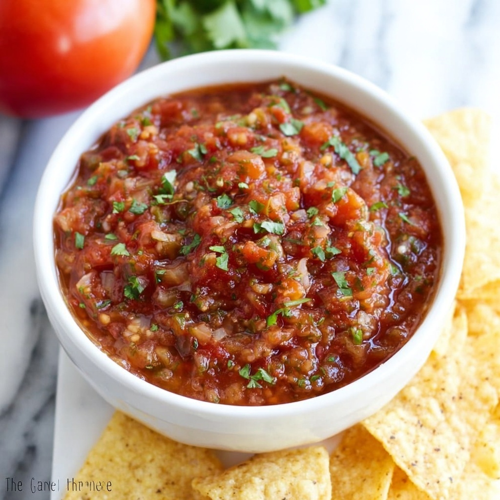 This Roasted Tomato Salsa is a vibrant and flavorful Mexican-style salsa made by roasting tomatoes, jalapeño peppers, onion, and garlic to enhance their natural sweetness and smokiness. Finished with fresh cilantro, lime juice, and spices, it offers a perfect balance of heat and tang, ideal for dipping or serving with your favorite dishes.