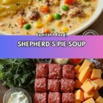 Shepherd’s Pie Soup is a comforting, hearty dish that combines all the classic flavors of traditional shepherd’s pie into a creamy, flavorful soup. Made with ground beef, mashed potatoes, mixed vegetables, and shredded cheddar cheese, this recipe is perfect for a cozy meal that’s both satisfying and easy to prepare.