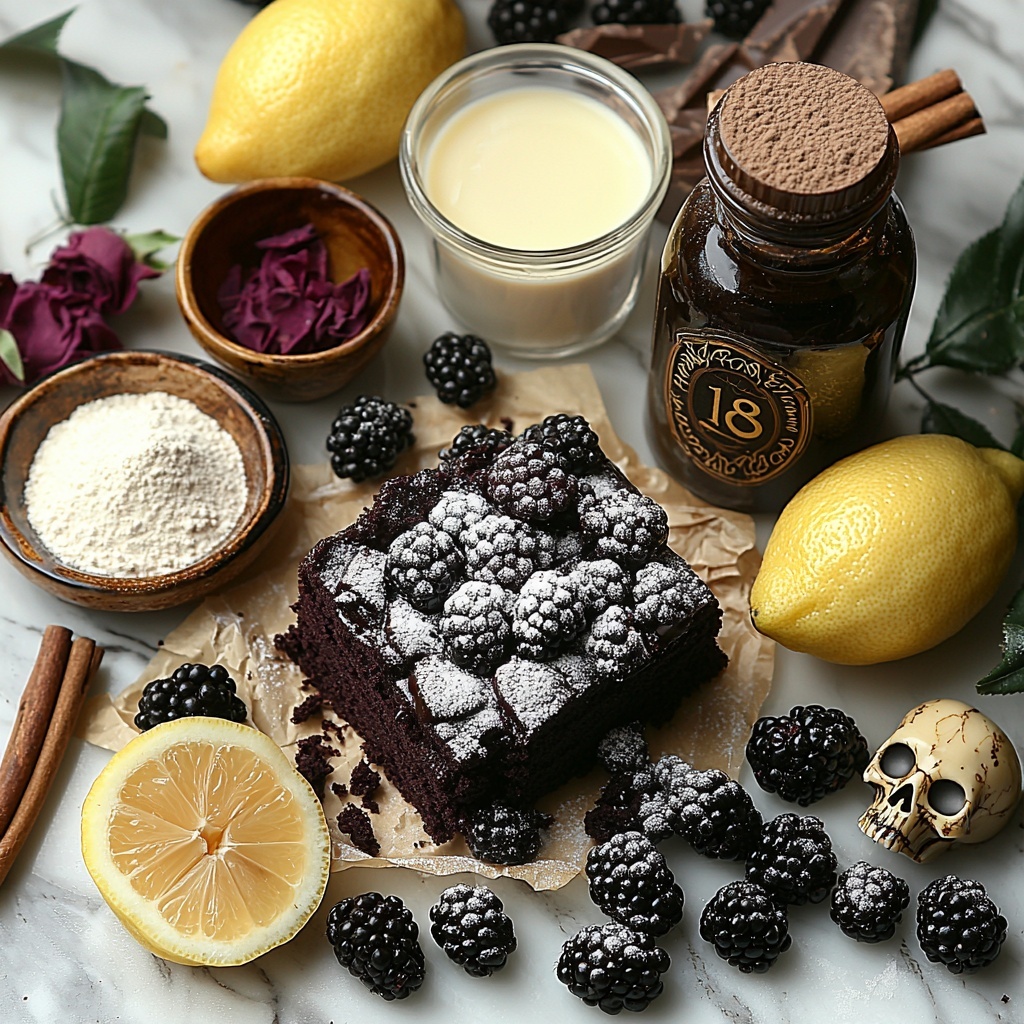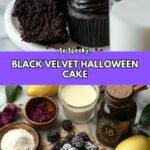 This recipe relies on simple, everyday ingredients that come together in a magical way to create the bold color, moist crumb, and luscious flavor that define the Spooky Black Velvet Halloween Cake Recipe. Each component plays a vital role, whether it’s the depth from black cocoa, the tang from buttermilk, or the brightness from the blackberry compote.