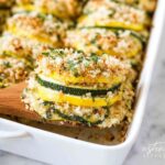 This Zucchini & Squash Casserole is a delicious and healthy baked side dish featuring tender slices of summer squash layered and topped with a flavorful mixture of Parmesan cheese, gluten-free Panko breadcrumbs, and garlic powder. Lightly seasoned and finished with fresh parsley, this casserole offers a satisfying golden-brown crust that pairs perfectly with any meal.