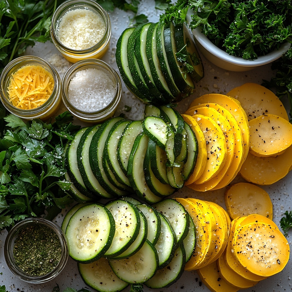Here’s a lovely trick: arrange the zucchini and squash slices in overlapping rows inside the dish. Four neat rows give the casserole an attractive presentation and ensure even cooking throughout.